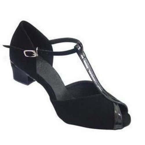 BLACK Sparkle Fabric with Black patient trim - T-bar angle strap, Suede Sole