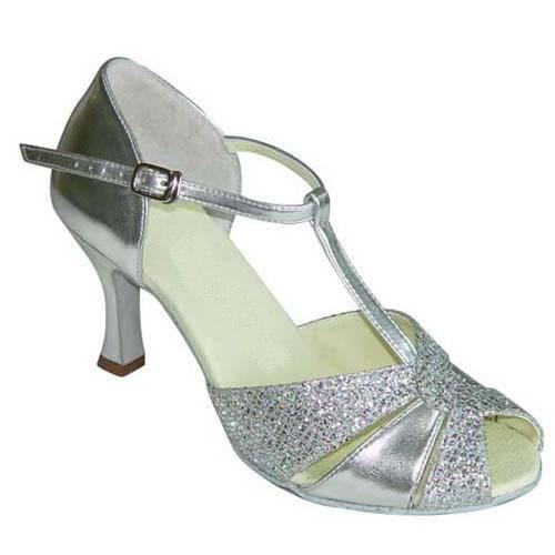 SILVER / SILVER SPARKLE - T-bar ankle strap - Suede sole