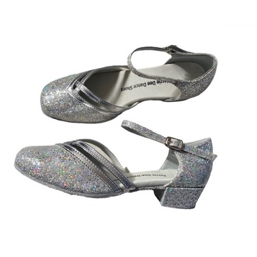 Silver sparkle with Silver Trim - Ankle Strap - Suede Sole