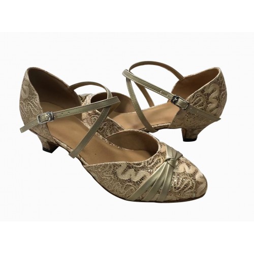 Gold sparkle lace fabric . A closed toe always lends to an air of formality.
