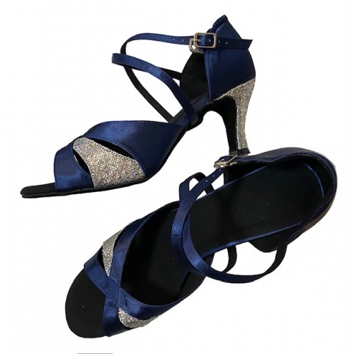 Navy Blue Satin with sparkle trim