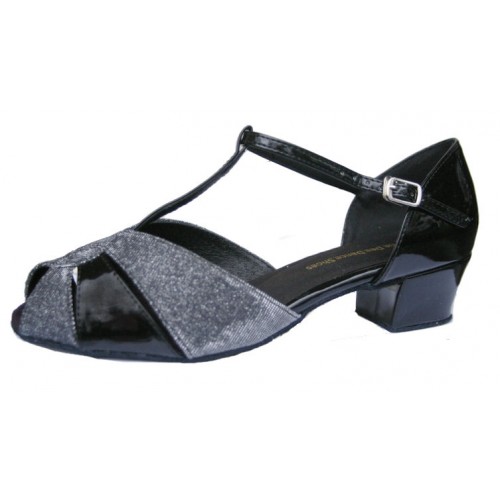 Black Patent with soft silver Trim - T-bar ankle strap - Suede sole