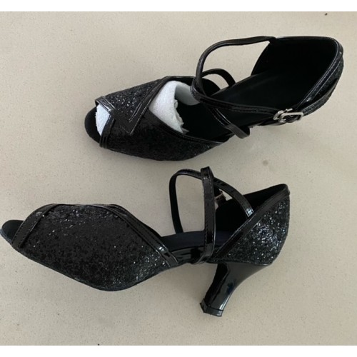 Black sparkle with Black Patent Trim - Cross over ankle strap, Suede Sole